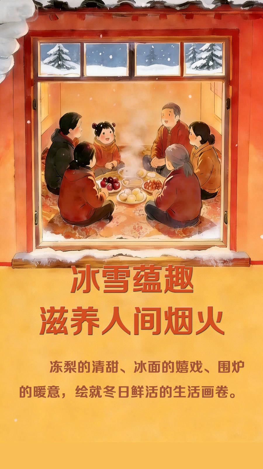 在人们的印象中,冰雪与年总是相伴而来,它们相互滋养,构筑起独有文化景观。冰凌垂下,宛如水晶帘幕,封存旧岁的琐碎;雪落无声,似给大地铺上绵软新被,孕育新春希望。农耕生产在冰雪的笼罩下暂时停歇,人们遵循着自然的指令,放下田间农具,盘点一年的收成与得失,如同万物在冰雪之下暗自积蓄力量,静候春生。